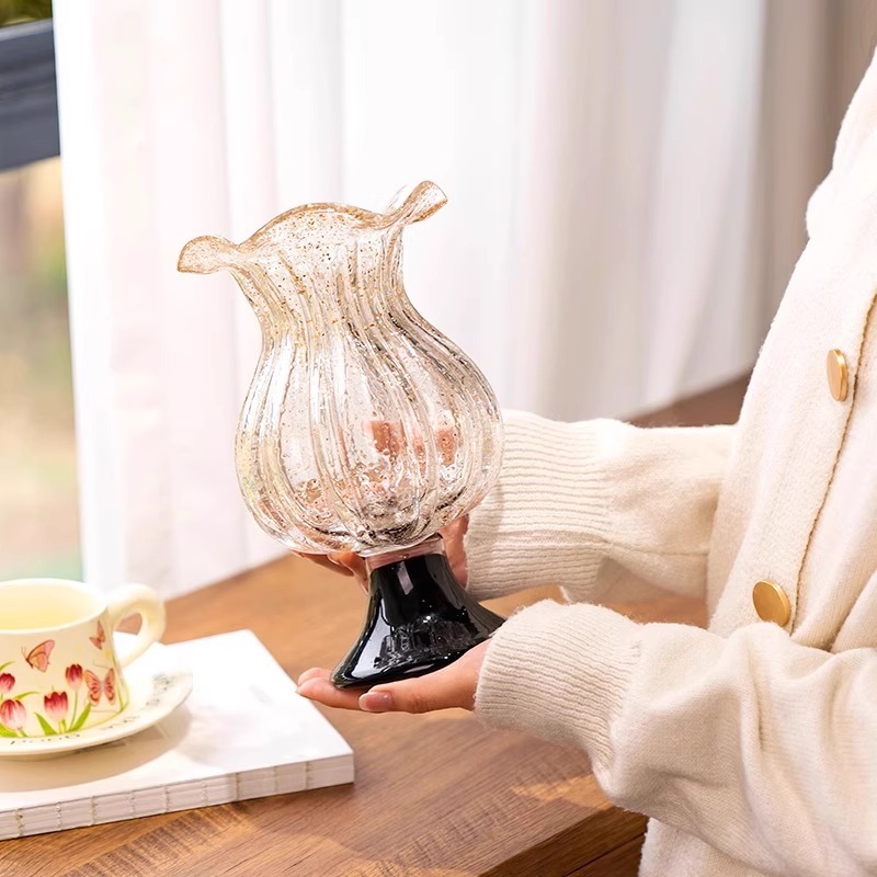ఉత్పత్తి పేరు: లగ్జరీ గోల్డ్-స్ప్రింక్డ్ వింటేజ్ టాల్ గ్లాస్ వాసే