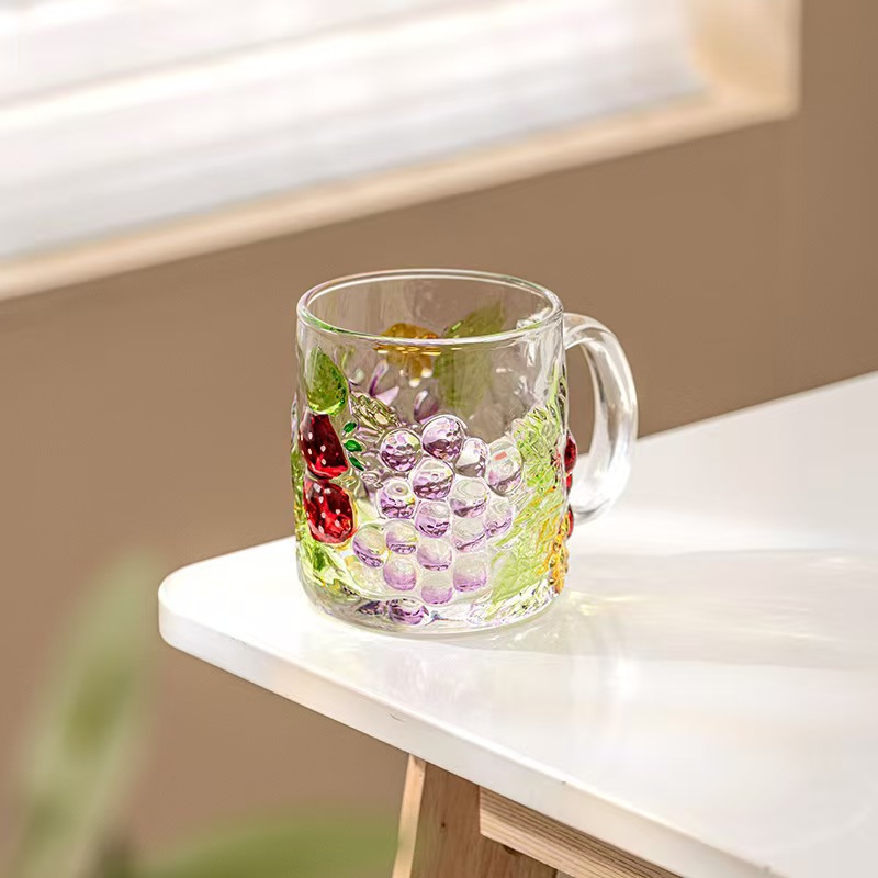 1. కప్ బాడీ, ఎంబోస్డ్ చేతితో చిత్రించిన పండ్లు, మరింత విలక్షణమైన మరియు అందమైన